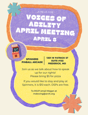 Join us for the April meeting of Voices of Ability as we talk about how to speak up for our rights!